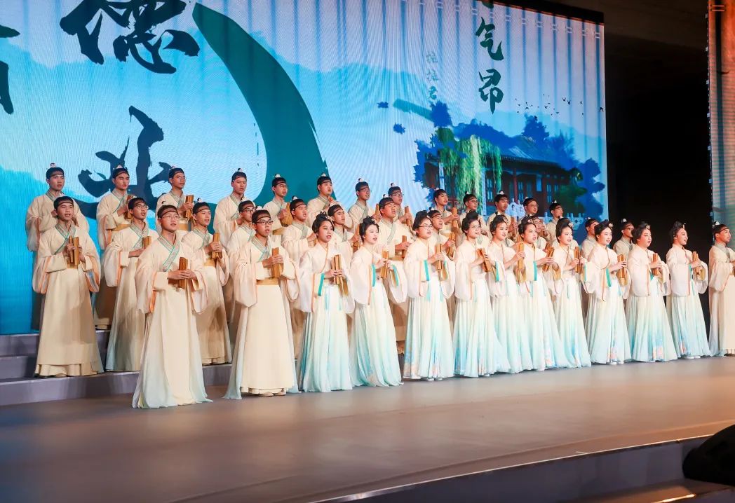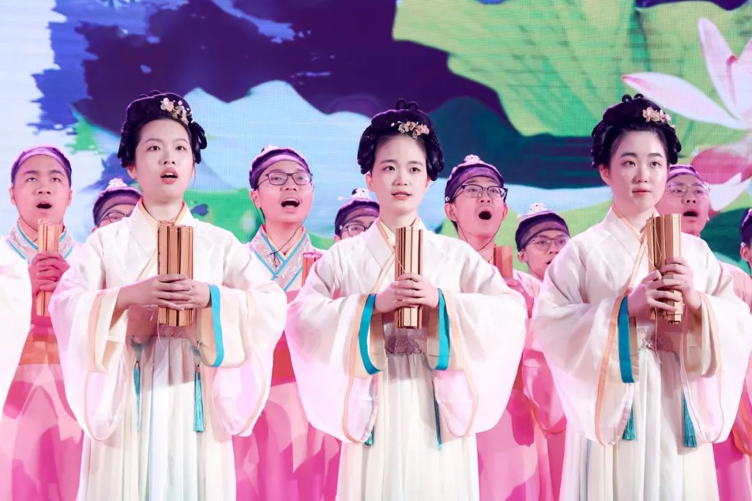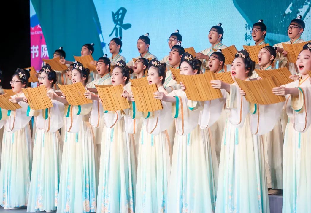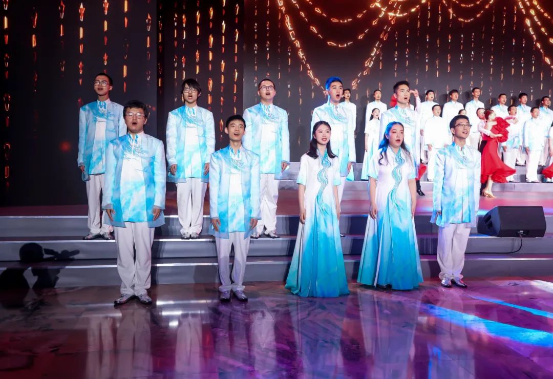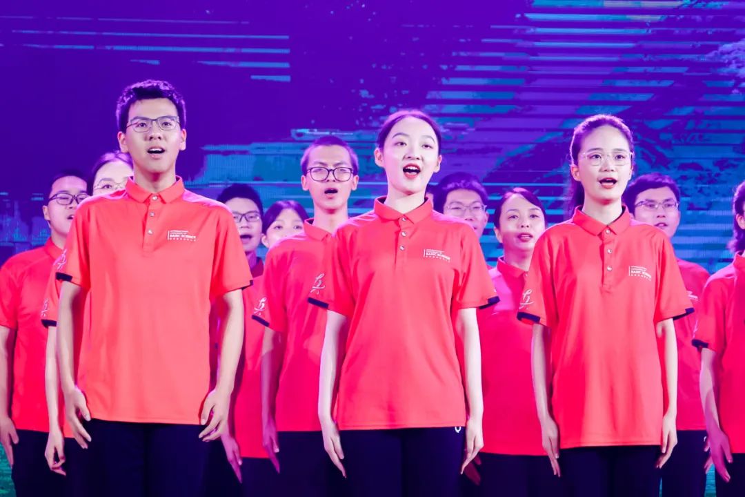的学子们分别表演了《求真颂》、《凌云歌》和《一砂一世界》合唱曲目。