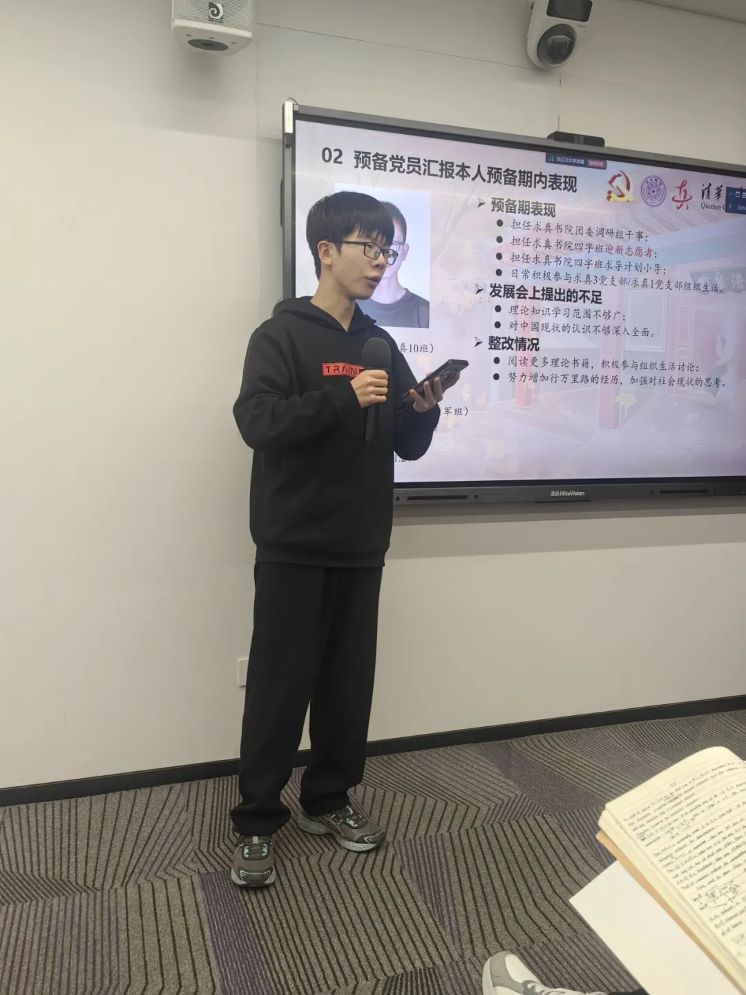 带班辅导员黄畅分别向与会党员汇报了预备期期间对三位同志的考察情况,并发表转正意见。