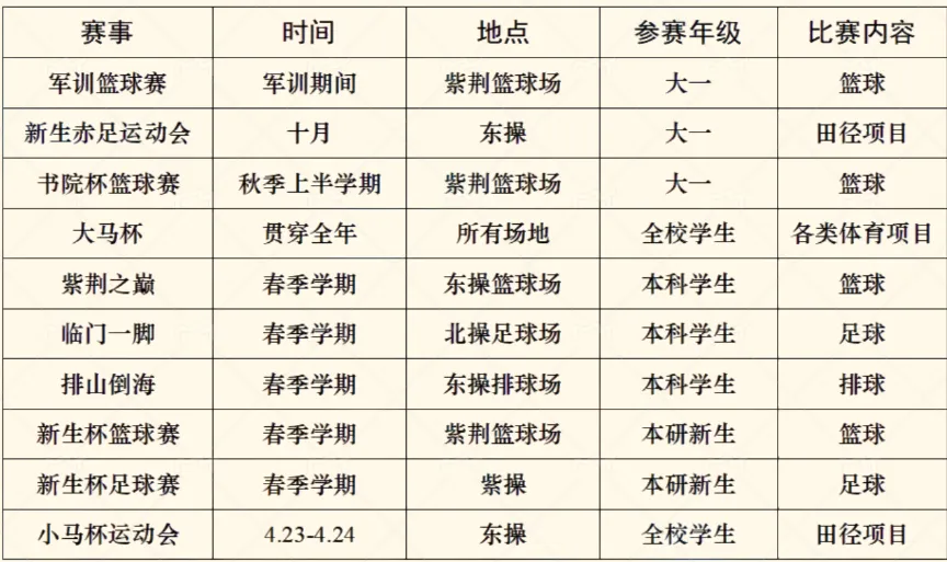 恭喜五字班的同学们正式开启在书院的探索之旅!大学生活不仅有精彩的学术篇章,强健的体魄也同样重要。为了帮助大家更加清晰了解体育生活中需要知道的信息,在这里书院学生会体育部整理了一份体育指南,请查收!(*^▽^*)