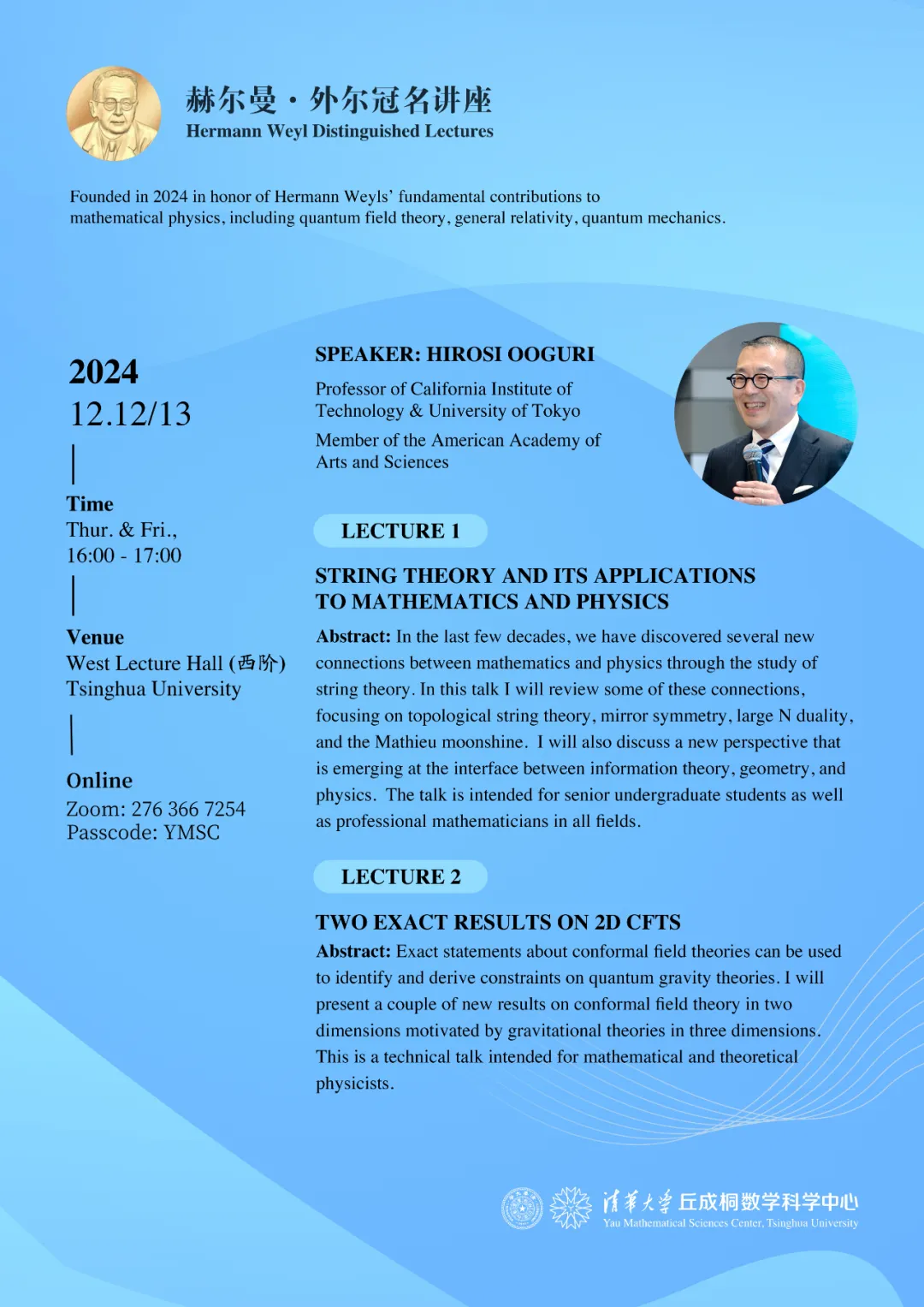 赫尔曼·外尔冠名讲座首期:大栗博司主讲