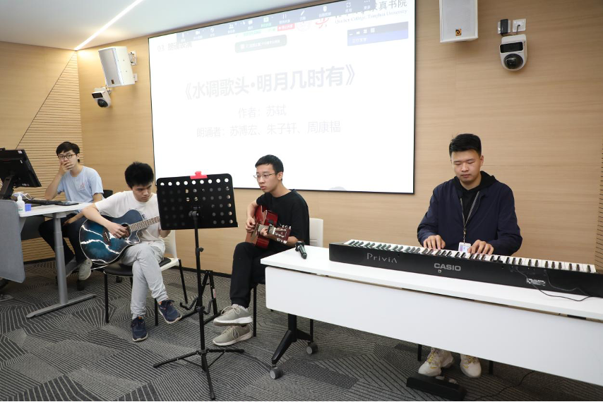 各组同学展示完作品之后,高昌对同学们选取的诗词作品及本次活动进行点评发言。他讲到,尽管诗词和数学表面看来好像隔着很远的距离,诗词是偏重感性的,追求浪漫;数学是理性的,讲究严谨。但事实上,数学和诗词拉起手来互通共融就会有不同寻常的聚变反应。用数学思维来理解诗词,就能提升诗词的境界,增加诗词的表现力;用诗性思维来进行数学研究,相信也能拓宽数学的视野,增加数学的想象力。在本次活动中,同学们富有感情地朗诵经典诗词作品,感悟和体味文字背后的情感力量和思想力量,分享古哲先贤们超越时空传递过来的丰沛诗意。高昌寄语大家,希望同学们的朗诵不只是为了参加一次比赛,而更应该是让这份难得的中华风雅融入生活,深入心灵。