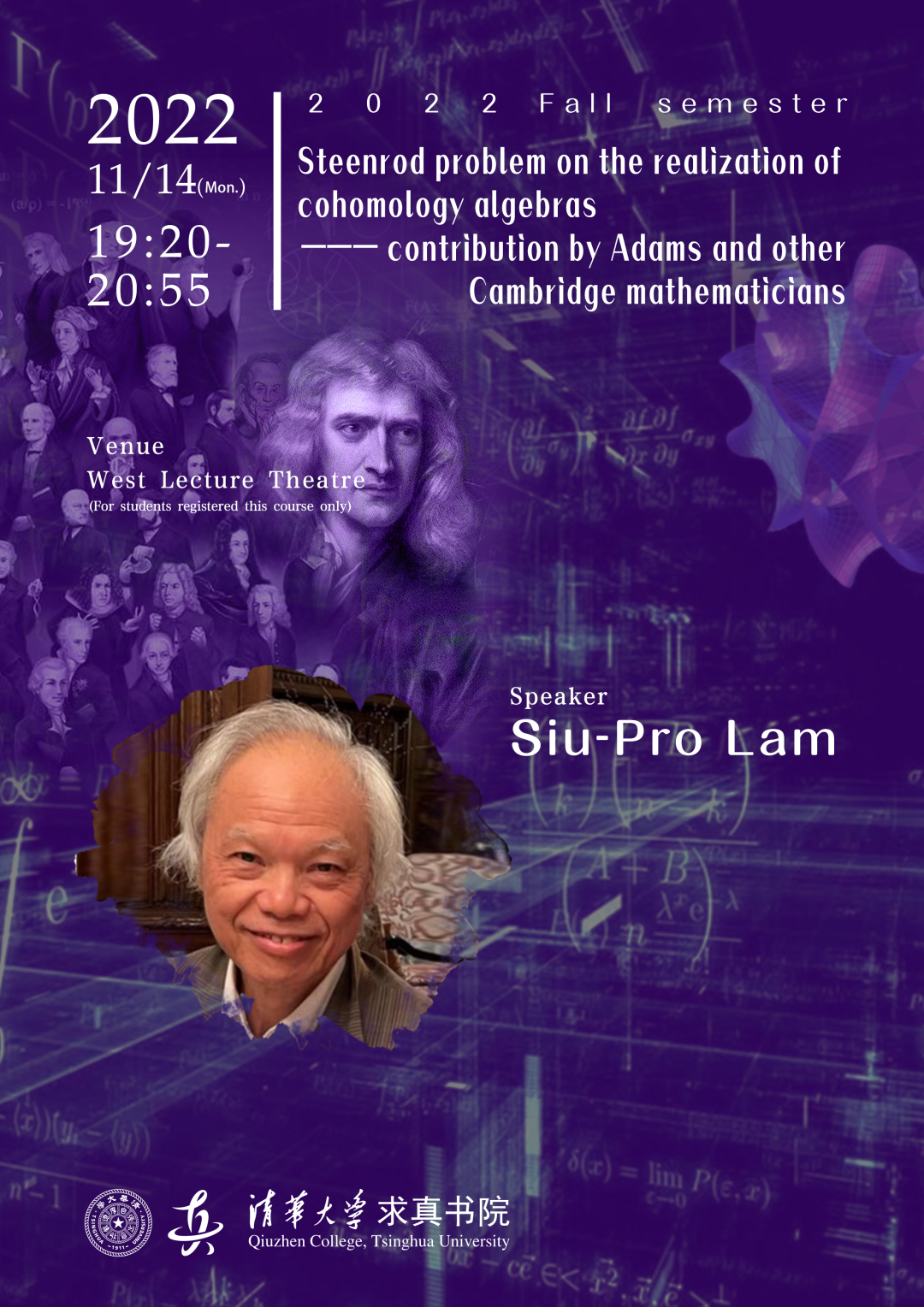 Siu-Pro Lam, a former graduate student of Prof J. Frank Adams, with research interests in Unstable Algebras over the Steenrod Algebra, Representation theory of Compact Lie Groups and Equivariant K-Theory.