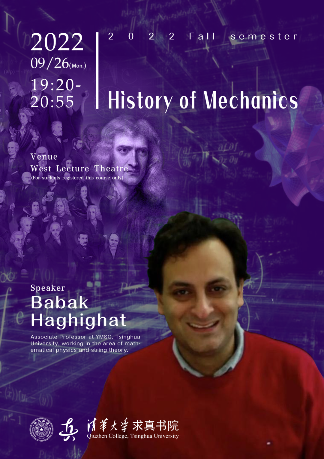 Babak Haghighat, Associate Professor at YMSC, Tsinghua University, working in the area of mathematical physics and string theory.
