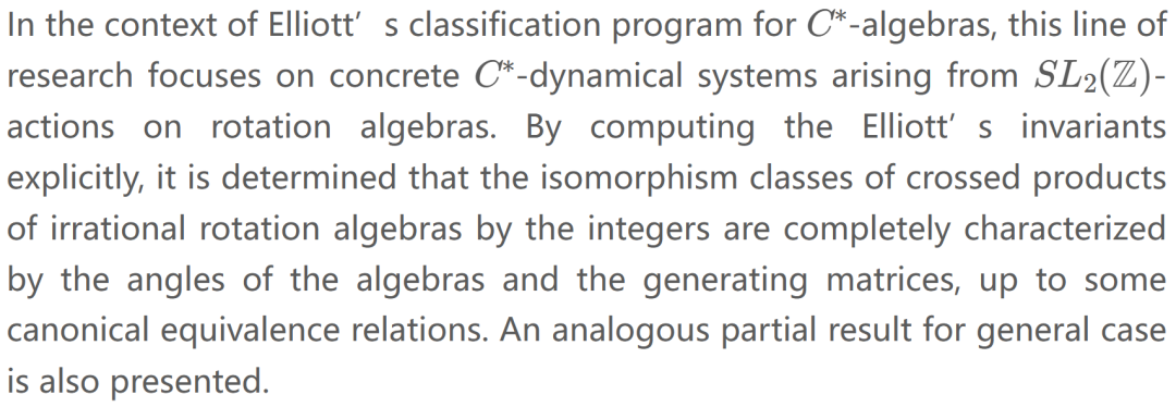 He graduated from the University of Tokyo in 2018, and then became an associate research fellow. After finishing He's postdocteral position at East China Normal University in 2022, He joined BIMSA as an assistant professor in 2023. He's recent research interests lie in classification theory of C*-algebras, C*-dynamical systems and topological dynamical systems.