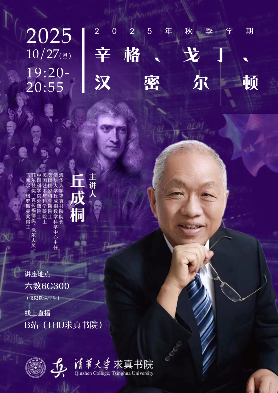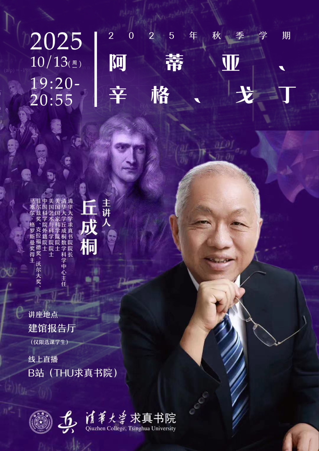 课程信息主题:尼伦伯格、奎伦、陶布斯时间:2025.11.3(周一)19:20-20:55线下地址:六教6C300主讲人:丘成桐主办单位:第一版主